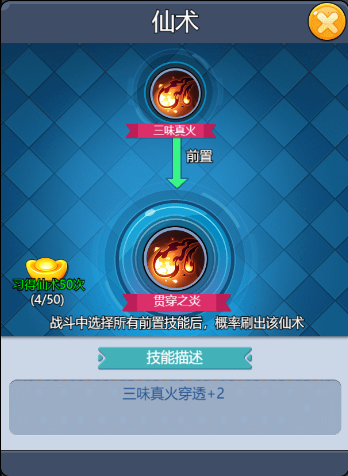 三味真火合成路线比较简单,仅需要爆炎扩张和真炎爆炸两个前置技能,都是解锁真炎术后能直接刷到的。